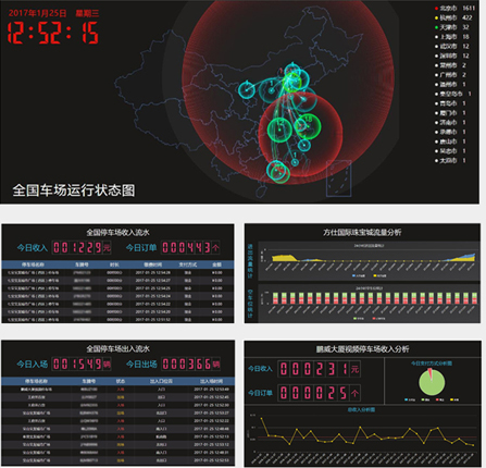 監(jiān)控中心控制臺(tái)包含管轄車場(chǎng)運(yùn)行狀態(tài)、管轄車場(chǎng)出入流水、管轄車場(chǎng)收入流水、收入分析、流量分析五部分。